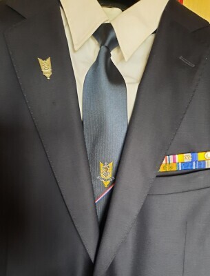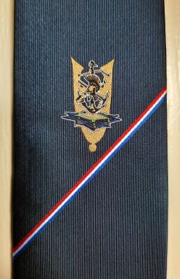 En wil je het veteranenpak helemaal compleet hebben, dan is vanaf heden een mooie bijpassende zijden stropdas met het VVRG-logo (zie foto's) te koop via het Geniemuseum in Vught.